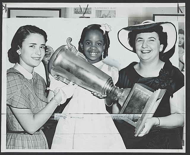 Seven-year-old Gladys Knight accepts her trophy for winning on Ted Mack’s Amateur Hour radio show (1952).
